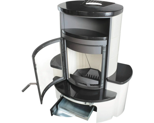 • Feuerraumauskleidung aus Spezialkeramik für gleichmäßige Wärmeabgabe